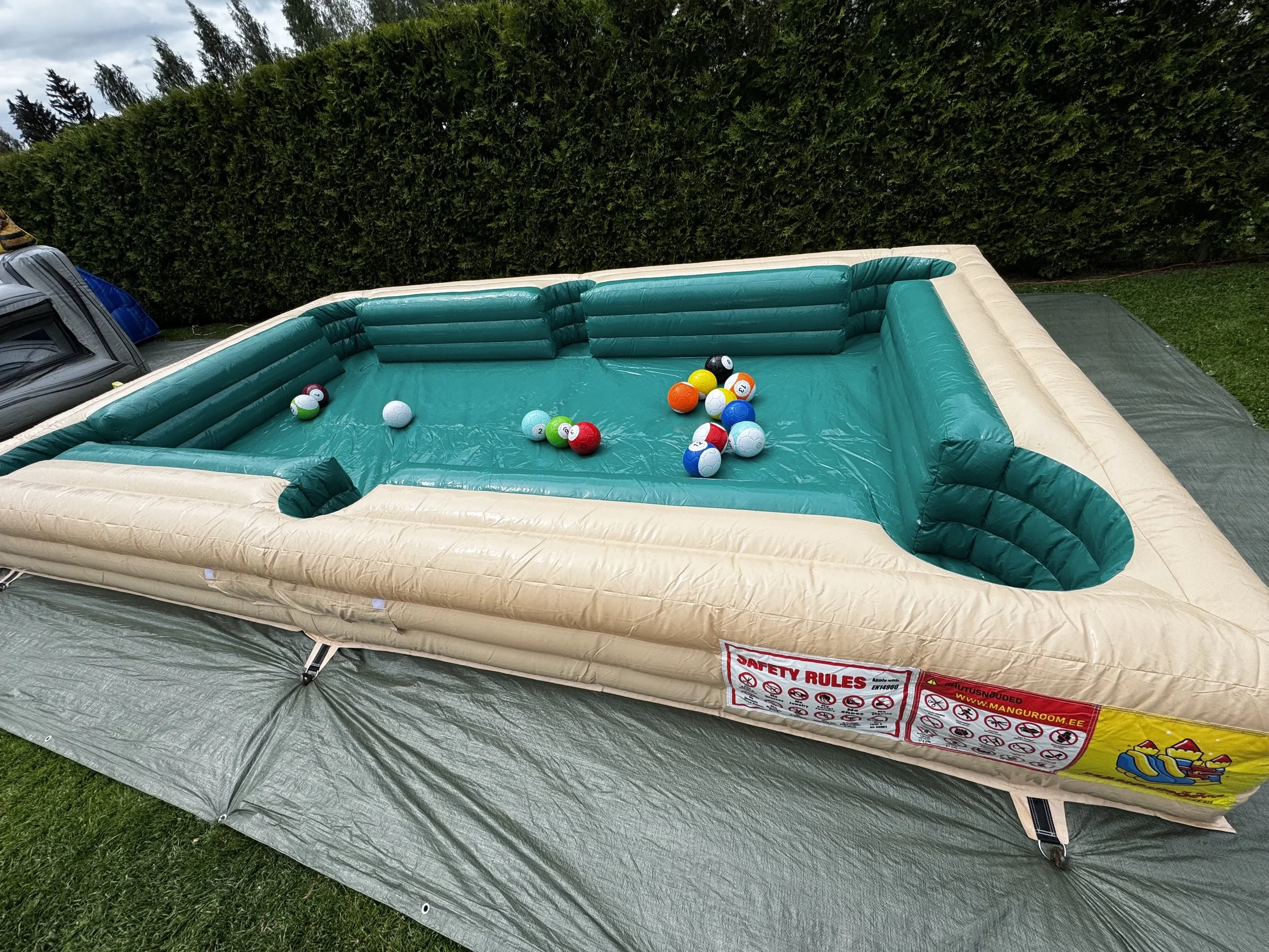 Täispuhutav piljard, mille suurus on 6x3,5 meetrit, kus saab proovida oma osavust täpselt nagu tavalisel piljardil. Hind: 115 eurot.