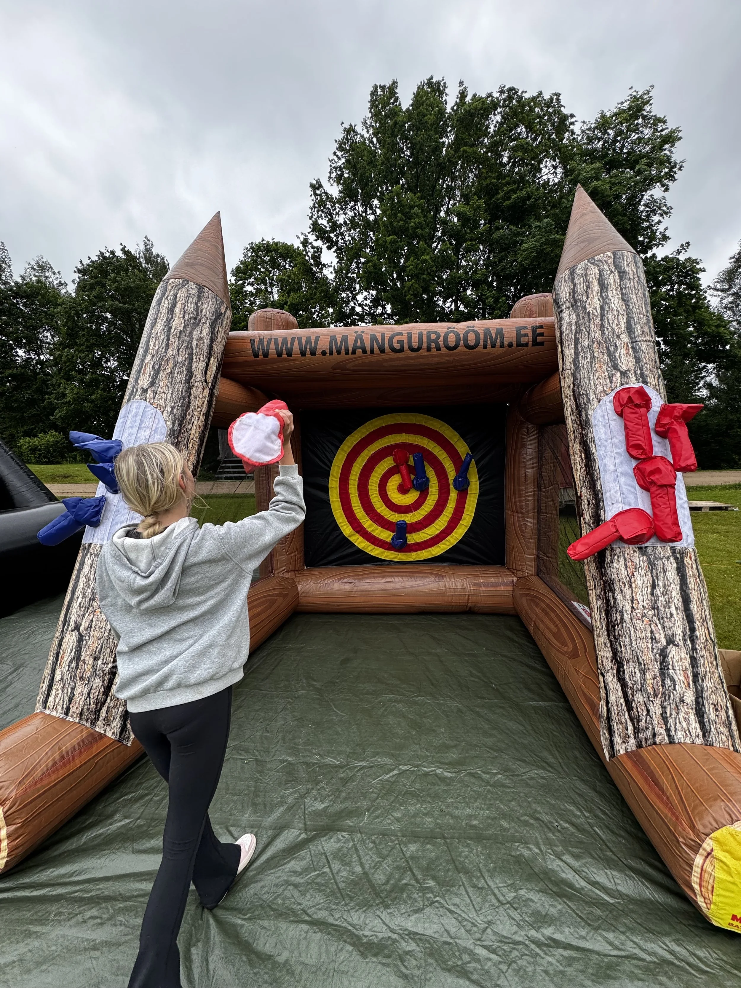 Täispuhutav kirveviskeala pakub turvalist ja lõbusat meelelahutust, mille suurus on 4,5x4x4,5 meetrit. Saab proovida oma täpsust ja viskamisoskust. Hind on 95 eurot.
